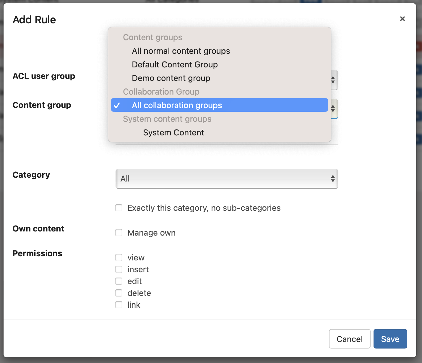 Define ACL rules for Collaboration Groups